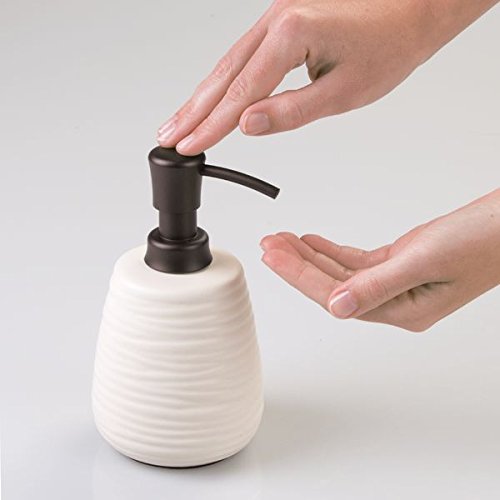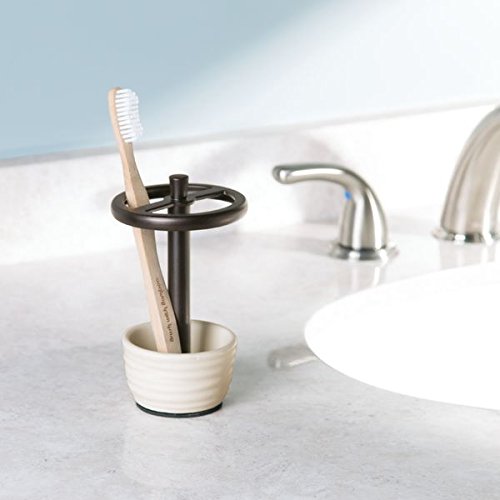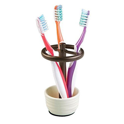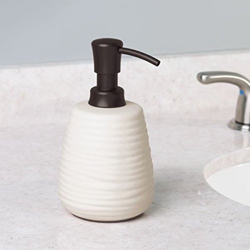 -. Title : mDesign Bath Accessory Set, Soap Dispenser Pump, Toothbrush Holder - 2 Pieces, Cream/Bronze