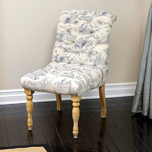 Best Selling Euro Tufted Fabric Chair, Blue and White