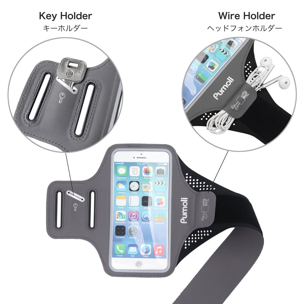 Smartphone arm band, arm strap key holder and earphone wire holder are convenient for storage.