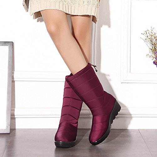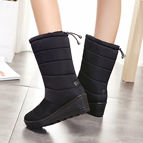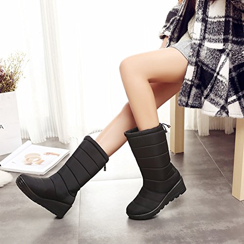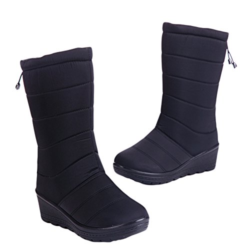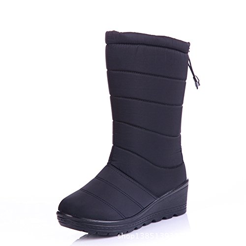 Waterproof platform measures approximately: 2" Full cotton lining for added warmth. Suitable for winter snow days, comfortable and stylish, keep the feet warm all-day long. The snow boots size is nomal size.If you need wear thick sock or foot have a little wide or fat, please order big one size. THANK YOU IN ADVANC! If you have any questions,weclcome to free to contact us. 0 |