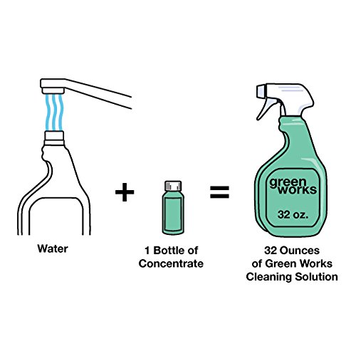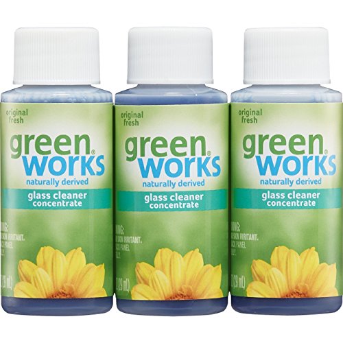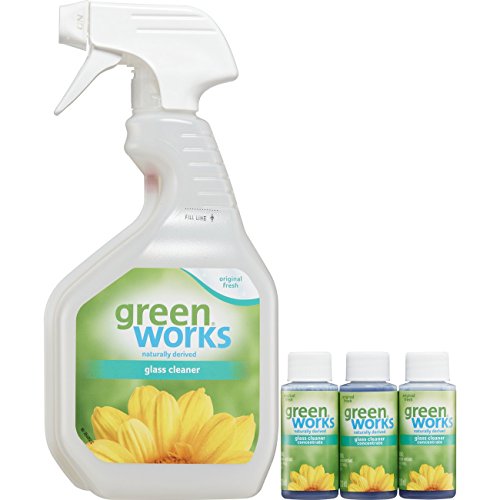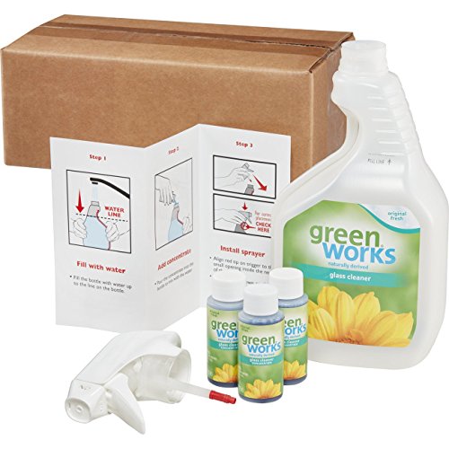 -. Binding : Health and Beauty -. Brand : Greenworks -. EAN : 0044600304151 -. Feature : Three 1 ounce bottles of easy to dilute Green Works Glass Cleaner concentrates and one 32 ounce spray bottle / Simply mix the concentrate with water in the spray bottle and start cleaning / Value pack makes three 32 ounce spray bottles / Powerful cleaning done naturally with 95% naturally derived plant and mineral based cleaning ingredients / Perfect for glass, mirrors, appliances, stainless steel and sealed granite -. IsAdultProduct : 0 -. IsAutographed : 0 -. Label : Clorox Company -. Manufacturer : Clorox Company -. NumberOfItems : 1 -. PackageQuantity : 1 -. ProductGroup : Health and Beauty -. ProductTypeName : HEALTH_PERSONAL_CARE -. PublicationDate : 2017-01-25 -. Publisher : Clorox Company -. ReleaseDate : 2017-01-25 -. Studio : Clorox Company -. Title : Green Works Glass Cleaner Concentrate, pack includes Spray Trigger bottle and 3 - 1oz concentrate bottles -. UPC : 044600304151