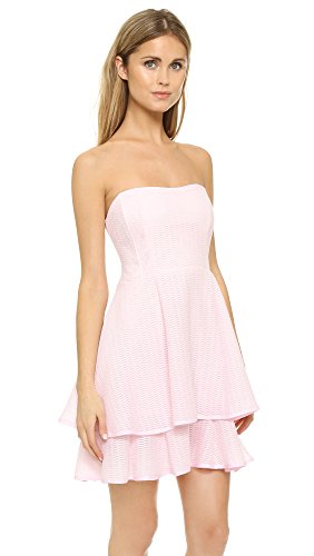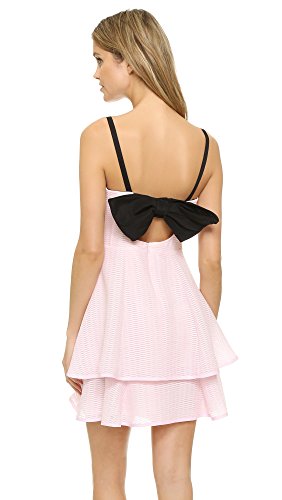 Embroidery creates a tonal pattern on this feminine Nanette Lepore mini dress. An overlay lends volume to the skirt, and a bow accents the cutout back panel. Boning and nonslip rubber binding structure the bodice. Optional grosgrain straps. Hidden back zip. Lined.Feature