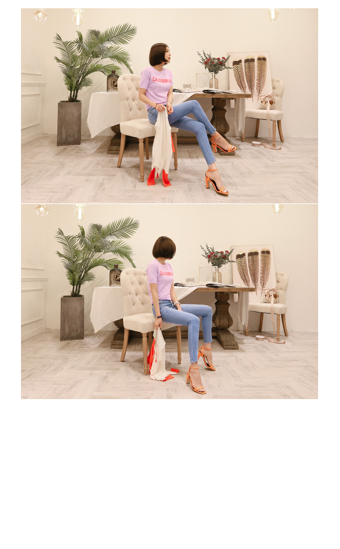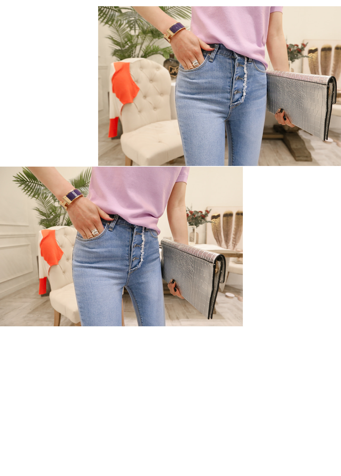 버튼라인의 은은한 수술로 트렌디한 포인트를 주었어요