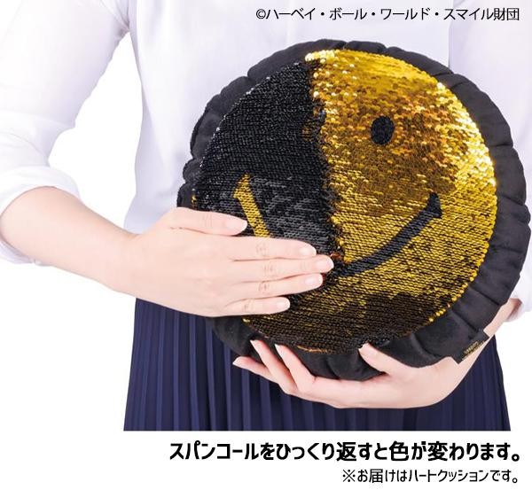 スパンコールをひっくり返すと、色が変わるクッションです。