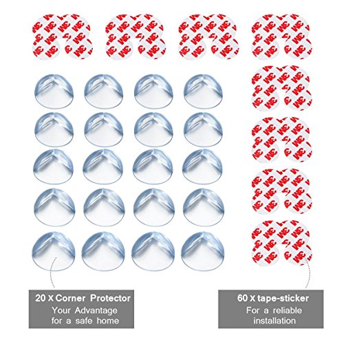 Are you frequently worrying about your babies getting hurt in your home? ●Clear corner covers are the perfect solution to babies. ●Yododo Baby Clear Corner Protectors help you stop worrying. The soft corner protector makes all your edges safe for your babies and kids. Features: ?No Pugent odor of plastic, rubber and foam etc. ●Due to the odorless transparent material, this corner protector is hardly noticeable! ●Protects not only the furniture corners from getting damaged but also prevents holes and marks in the walls. ●Effectively absorb sudden bump and protect your baby from painful injuries of sharp furniture and table corners. ●These thicker gel-like adhesives are custom made with special mold. They fit best for our corner guards and cover 98% area of the inner wall and bring stronger sticking such as angles of wood, glass, metal and plastic. Specification: ●Sizes:1.18*0.9*1.70 inch ●Weight: 200g How to Use? 1. Clean the furniture corner and allow it to dry completely. 2. Adhere tape to the 3 section of your table corner. 3. Press and hold each side firmly for at least 10 seconds. Package Included: ●60 x Tape Stickers ●20 x Corner Protectors ▲▲▲NOTE: 1. This is NOT a toy. To be used by adults only. 2. Please do not apply the product on weak or soft ends. 3. Please ensure the inside of edge guards and furniture corners clean and dry before use. 0