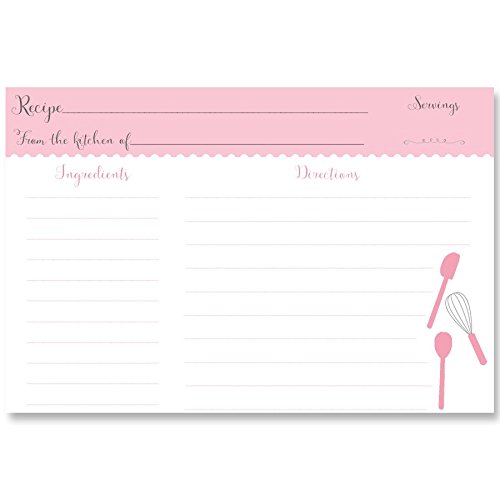 Recipe Cards, Pink, Bridal Shower, Housewarming, Wedding, Housewarming, Gift, Stock the Kitchen, Vintage, Retro, Size 4 x 6, Double Sided with Lines, Set of 24 Printed Cards, Basic Recipe