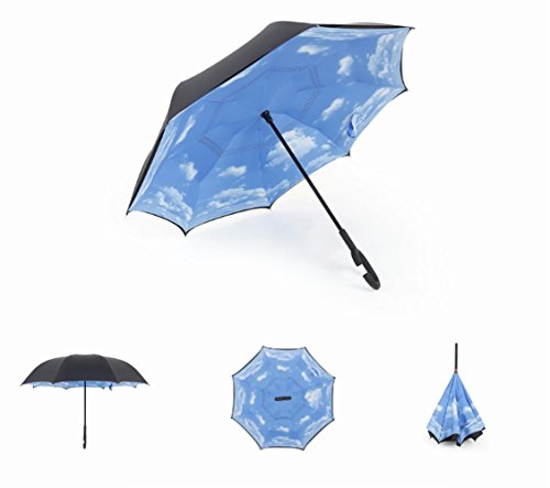-. Binding : Misc. -. Brand : IFLYING -. Feature : User-friendly double layer and button design inverted umbrella, the embedded push- button switch is easy to operate and will not pinch. / Glodeals Inverted Umbrella + Umbrella Waterproof Cover for car as one Set: New inverted design, it opens and closes apex down, making getting into and out of a car or other covered area much easier all while shielding you from the rain longer. / Self Standing when closed, but not held tight by the velcro close strap, until it drips dry. No need to keep the umbrella open to drip dry when bring it inside in rainy day. It takes up less space in a hallway or foyer that way, and no one can trip over it. / Textured C shape handle: it'll leave your hands free for holding a baby or using a mobile if needed. / Windproof and waterproof, Uv protection,perfect for rainy day or sunny day. -. IsAutographed : 0 -. IsMemorabilia : 0 -. Label : IFLYING -. Manufacturer : IFLYING -. MPN : FY2600328OE -. PartNumber : FY2600328OE -. ProductGroup : Sports -. ProductTypeName : SPORTING_GOODS -. Publisher : IFLYING -. Studio : IFLYING -. Title : IFLYING Unique Windproof Reverse Folding Double Layer Inverted Umbrella, Self Standing for Car Rain Protection C Shape Handle