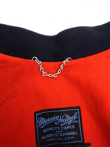 Ladies ブランド- カラー紺・赤 メール便不可 コンディション★★★ モデル- 素材ウール 表記サイズ記載なし スタッフコメント戦場の看護婦が白衣の上に羽織っていたアイテム。裏地全体数か所に虫食い小穴があります。ボタン付け替え跡あり。 実寸サイズ 着丈 120 cm 袖丈 124 cm ※ウエスト・ヒップ以外は平置き採寸