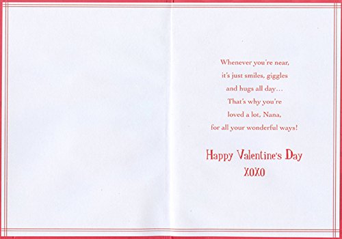 -. Feature : Front Message: It's Valentine's Day, Nana! / Inside Verse: Whenever you're near, it's just smiles, giggles and hugs all day... That's why you're... / Card Size: 5.25x7.5 inches / Includes: 1 card / 1 red envelope / Special Features: Silver Foil, Embossed, Spot UV Coating, Tipped Insert