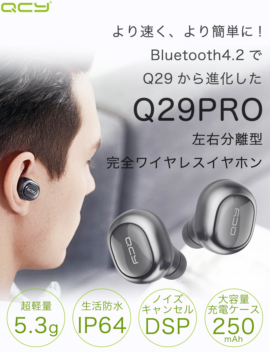 【快適・フィット・安定】イヤホン製造元ならではのイノベーション。Q29Proは2000人以上の耳の構造のデータを参考にした上で、耳に装着しやすい角度を研究し、より快適で、よりフィットし、より外れにくいイヤホンの装着を実現しました。異なる耳のサイズに対応でき、触り心地のよい素材を使用することで、音楽の楽しさを存分に味わうことができます。