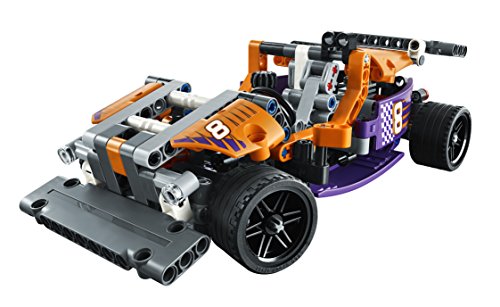 -. Feature : Features a sleek, authentic design, wide rims with slick racing tires, working steering and gearbox, detailed engine with moving piston, fuel tank, foot pedals and huge exhaust pipes / Check out the purple and orange color scheme with sporty racing stickers / Tilt the racing seat to reveal the working transmission / Zoom around the racetrack / This Technic model is designed to provide an immersive and rewarding building experience, appropriate for children aged 9 to 16