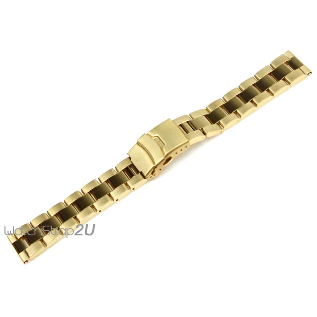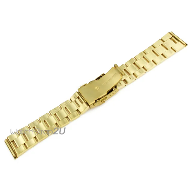 3 링크 스테인레스 스틸 금속 손목 스트랩 잠금 안전 배 배포 걸쇠 골드 18 미리메터 22 미리메터