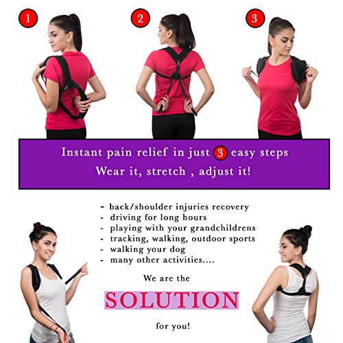 ✅ NO MORE UNATTRACTIVE SLOUCHING: If you suffer from thoracic kyphosis and if you have the so called “computer posture”, get the adjustable posture brace for improve bad posture and your problem will be solved! The back brace support will push your shoulders back and it will align your clavicle. At the same time, it will provide your upper back with support. Wear the posture corrector regularly and soon you’ll have a proud and correct posture!