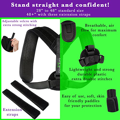 Posture Corrector for Men & Women Adjustable Back Braces Support with Extension Straps & Pads Therapy Device for Thoracic Kyphosis & Upper Back Pain.
