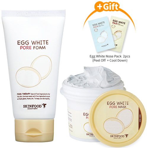 -. Feature : Skinfood Egg White Pore Cleansing Foam 5.07oz(150ml) / Skinfood Egg White Pore Mask Wash Off 4.40oz(125g) / + Egg White Nose Pack 2pcs (Peel Off + Cool Down)