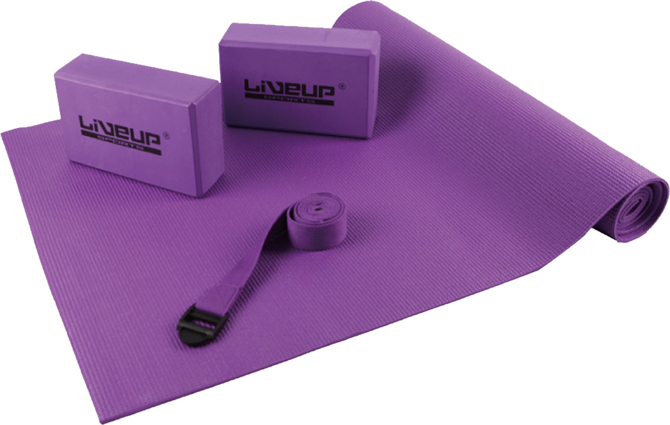 Brand New Yoga Pack (PVC Yoga Mat, 1 Pair EVA Yoga Bricks, 1 Cotton Yoga Strap) by Live Up Sports (Branded). Local SG Stock and warranty !!