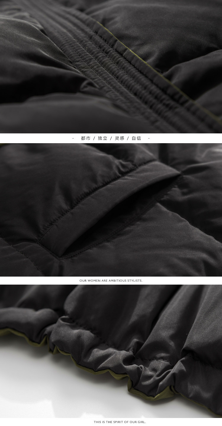 | 面 料:面料:聚酯纤维 里料:聚酯纤维 中间夹层胆料:聚酯纤维 填充物:白鸭绒(含绒量90% 鸭绒克重: (DUCK DOWN WEIGHT) S M L XL 165g 173g 182g 191g颜 色:黑色 |