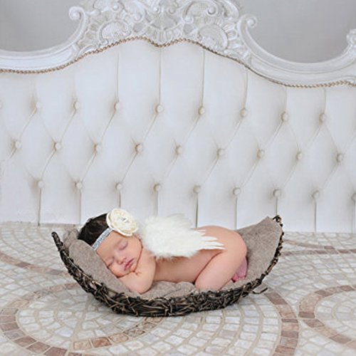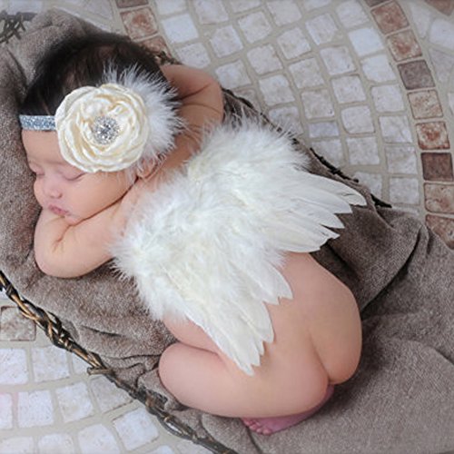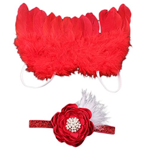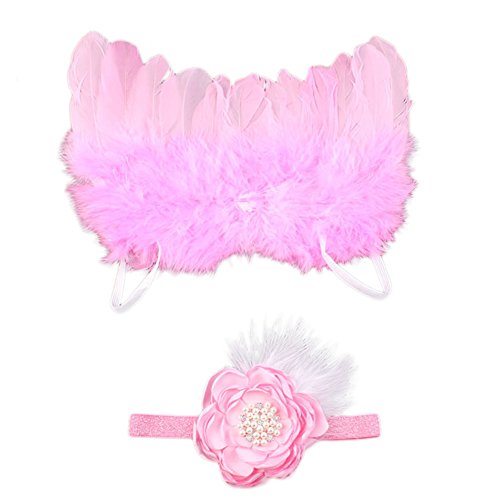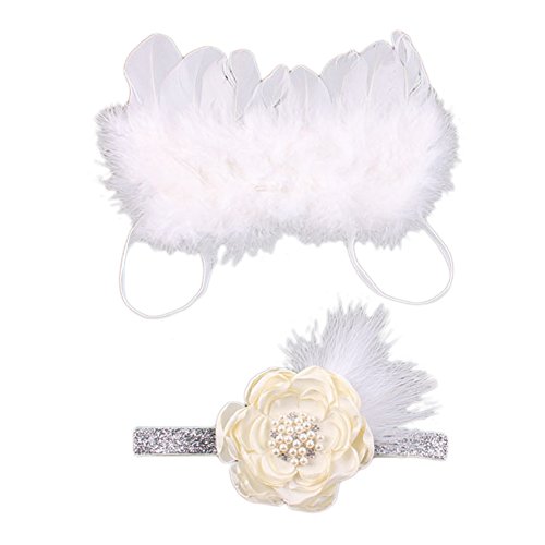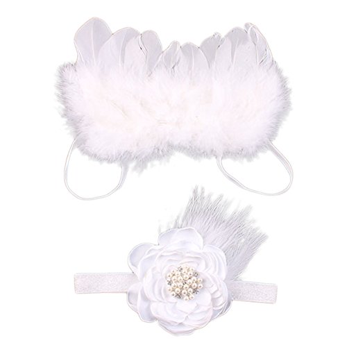 -. Title : PYD Newborn Baby Feather Angel Wing Flower Pearl Headband Photo Props