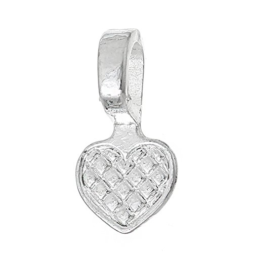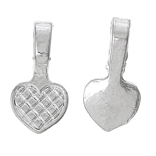 Rockin Beads Brand, 200 Glue on Heart Bails Pendant Hanger Silver Plated 16x8mm