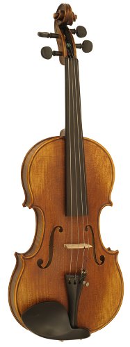 -. Feature : Select even grain spruce top; beautifully flamed maple back / Solid carved and graduated; inlaid purfling; antiqued spirit varnish / Ebony fingerboard ebony Hillstyle tailpiece and pegs; Guarneri-style chinrest; shop adjusted in USA; German maple bridge; e-string adjuster; Pro Arte synthetic core strings / Deluxe oblong case with cover; semi French-fitted interior with matching blanket; four bow holders; three accessory compartments / Half-lined brazilwood bow with ebony frog; genuine white horsehair / Ebony fingerboard ebony Hillstyle tailpiece and pegs; Guarneri-style chinrest; shop adjusted in USA / German maple bridge; e-string adjuster; Pro Arte synthetic core strings