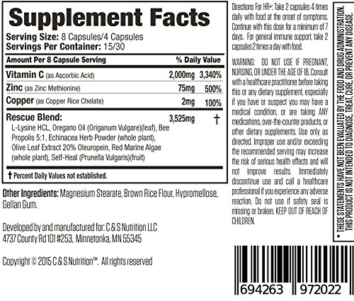 Immune Support Formula (Herp Rescue Discreet) The #1 Solution for the Common Cold, Cold Sores, Herpes, and Shingles. L Lysine, Zinc, Vitamin C, Oregano Oil