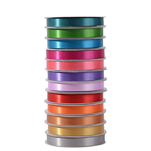 3/8 inch Satin Ribbons Assorted Solid Bright Colors - 12 Rainbow Assortment Rolls Variety Pack X 10 Yard - Total 120Yds Ribbon for Gifts Wrap Craft Fabric Wedding Decorations (Fashion Collection GLOW)