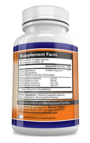 -. Binding : Health and Beauty -. Brand : Nature is best -. EAN : 0821079313101 -. Feature : PROBIOTICS PERFECT FOR WEIGHT LOSS: Recent studies have shown that vegan probiotics are able to help your metabolism to be restarted and thus to burn more calories. The result is that you can lose the extra weight easier and without risk, but in a safe way. / DIGEST EASIER: Certain foods are not easy to digest for every organism. Our probiotic supplement providing you with the necessary probiotic essentials, will allow you to digest your food with ease and spare you from lots of trouble and discomfort. The perfect Probiotic for women and men. / AN ENERGY SUSTAINING FORMULA: The ingredients consisting these 60 Probiotic capsules, being full with vitamins and important for our organism elements, are able to provide you with all the energetic components you need to get through the day! More energy brings better mood, too. / SUPPORT YOUR SYSTEM: Sometimes our body may get a bit weary, since it is forced to face all those threatening to our health, agents. The Live Cultures consisting the probiotics we provide, may support it with certain elements required to strengthen the defenders of our system, by just offering the missing dietary nutrients! / WHAT A PROBIOTIC CAPSULE CAN DO FOR YOU: 1 capsule twice a day, taken half an hour before your lunch or dinner, is enough to provide you with all the elements missing from your organism to remain energetic and to digest with ease. Give your body all it needs to be strong and healthy! -. IsAdultProduct : 0 -. Label : Health and Personl care -. Manufacturer : Health and Personl care -. MPN : Probiotic-60 -. PackageQuantity : 1 -. PartNumber : Probiotic-60 -. ProductGroup : Health and Beauty -. ProductTypeName : HEALTH_PERSONAL_CARE -. Publisher : Health and Personl care -. Studio : Health and Personl care -. Title : Best Probiotic Supplement - 60 Digestive Probiotic Capsules, For Support & Weight Loss - Probiotics For Men /For Women - Millions Of Live Cultures To Renew Your Body & Life -. UPC : 821079313101