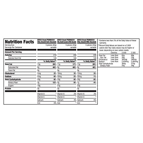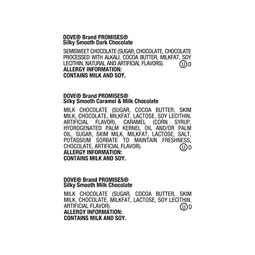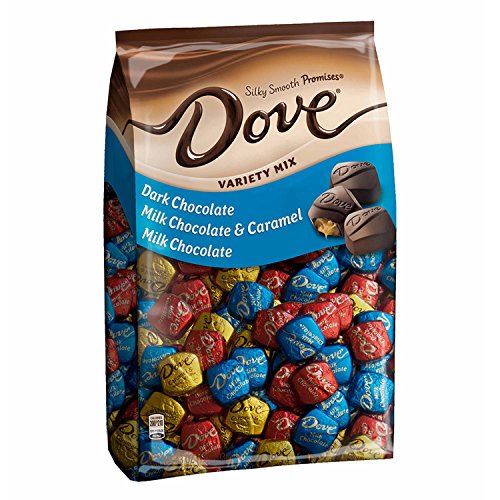 Find everyone's favorite DOVE Chocolate flavor with the DOVE PROMISES Chocolate Candy Variety Mix. Featuring three delicious assorted chocolates: DOVE PROMISES Silky Smooth Milk Chocolate, DOVE PROMISES Dark Chocolate and DOVE PROMISES Caramel Milk Chocolate Candy. Each piece of delicious chocolate is made with the finest quality cacao for a rich chocolate experience. Best of all, each individually wrapped candy piece shares a special message under the foil wrapper that will make them smile. Savor special moments with DOVE Chocolate.Feature