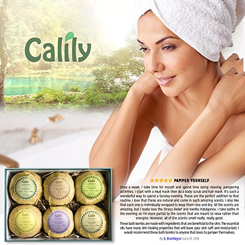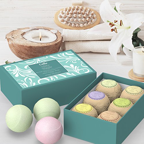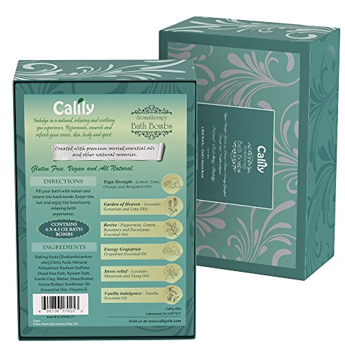 Indulge in a natural, relaxing and soothing spa experience in your own bathtub with this bath bomb kit of six different aromatherapy bath bombs. Bath bombs make bath time enjoyable right from the time you drop it in the tub. Just fill your tub with water, add your bath bomb, enter the tub and watch the bath bomb fizz away just like your worries, stress and pains. Our essential oil bath bombs are Gluten-Free, Vegan and All-Natural, made with rejuvenating and healing ingredients like lavender, peppermint and grapefruit oils, and soothing shea butter, cocoa butter, kaolin clay and Vitamin E for smooth, glowing skin. Relieve pain and muscle cramps, inflammation, and even migraine headaches with our bath bombs, also featuring powerfully restorative Epsom salt and Dead Sea salt. This bath bomb kit or bath bomb gift pack includes Yoga Strength, Garden of Heaven, Revive, Energy Grapefruit, Stress Relief and Vanilla Indulgence: Yoga Strength: Revitalize body, mind and spirit with this energizing and purifying blend of Lemon, Lime, Orange and Bergamot oils. Garden of Heaven: This power trio of Lavender, Geranium and Lime Oils is a heavenly embrace that calms the body at the deepest levels. Revive: Peppermint Oil, Lemon, Rosemary and Eucalyptus Oils means it's time to wake up to a burst of wonderful, natural aromas! Energy Grapefruit: Harness the sheer power of antioxidant-rich, antimicrobial, antiseptic and stimulating Grapefruit Oil. Stress Relief: It's aromatherapy at its best with this combination of Lavender, Marjoram and Ylang Oils. Vanilla Indulgence: This warming, sweet treat smells delicious, promotes skin and hair health, and can even support balancing the hormonal systemFeature