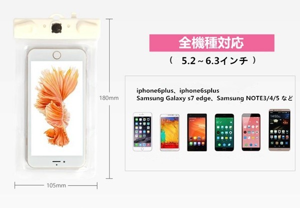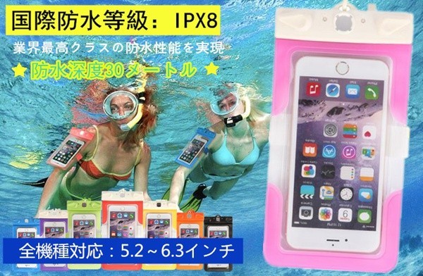 【カラー】ブルー、オレンジ、グリーン、ローズ、ダークブルー、ホワイト、ピンク、 パープル、イエロー、ブラック【サイズ】(5.2?6.3インチ)約18cm(縦)×約10.5cm(横):iPhoneシリーズ、GALAXYシリーズ、Xperiaシリーズ等、5.2?6.3インチ(スクリーンサイズ)までのスマホはほとんど対応します。【使用便利】 透明度に優れるPVC素材が採用され、スマホをケースに入れても、何も付けてないような鮮明な写真撮影とスムーズなタッチ操作が可能になります。 野外ライブ、週末の釣りや水泳、レシピを見る時、料理を作りながら携帯をいじりたい時、冬の雪遊び、温泉/お風呂で音楽やビデオを楽しみたい時、海辺撮影など(両面透明なので、自撮りに便利です)様々なアウトドアとレジャーの場合に役立ちます。多雨時期にも是非傘と一緒に。【防水力抜群】防水国際保護等級:IPX8認定獲得、水、お湯、雪や埃等完璧にシャットアウトします。【ネックストラップ付き】両手をフリーにする便利なネックストラップ付き、簡単に装着と解除できます。