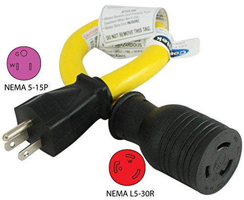 Conntek 1-Feet Generator Adapter 15-Amp U.S Plug to 30-Amp Locking Female Connector L5-30R