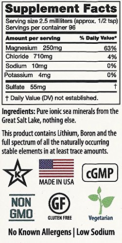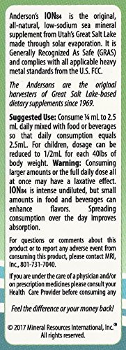 Studio : Mineral Resources Inernational, Inc. Publisher : Mineral Resources Inernational, Inc. Binding : Health and Beauty Product Description ION84 is concentrated Mineral Drops sourced from the Great Salt Lake. ION84 contains Primordial elements including Ionic Magnesium and Trace Minerals. MRI has been harvesting minerals from the Great Salt Lake in Utah since 1969 and is dedicated to producing the most effective and highest quality mineral and trace mineral dietary supplements and ingredients. 0