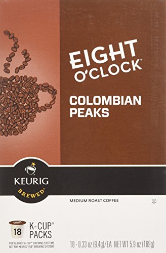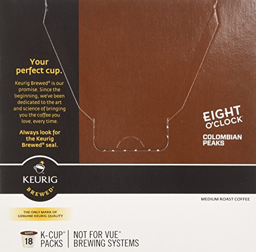 America's original gourmet coffee, and the country's number one whole bean coffee, has been delighting coffee lovers for over 150 years. Now that same smooth, rich, delicious coffee is as close as your Keurig brewer. With one touch of a button, you can enjoy the 100% premium Arabica beans that have been carefully selected and expertly roasted just for you. With single cup convenience, anytime is the right time for Eight O'Clock coffee. The finest blend of award winning 100% Colombian coffee beans, Colombian Peaks is a medium roast with a sweet finish. Rich and full-bodied, it's easy to understand why Arabica beans from Colombia are so popular. Made with 100% Arabica coffee.The Keurig single-cup brewing system uses a special packaging for coffee, tea and hot cocoa called K-Cup portion packs or "K-Cups". Each K-Cup is an airtight, mini-brewer that locks out oxygen, light, moisture and humidity while locking in freshness and flavor. Simply insert the no mess K-Cup into the brewer and hit the brew button for a fresh-brewed, perfect cup of coffee or tea in under a minute.