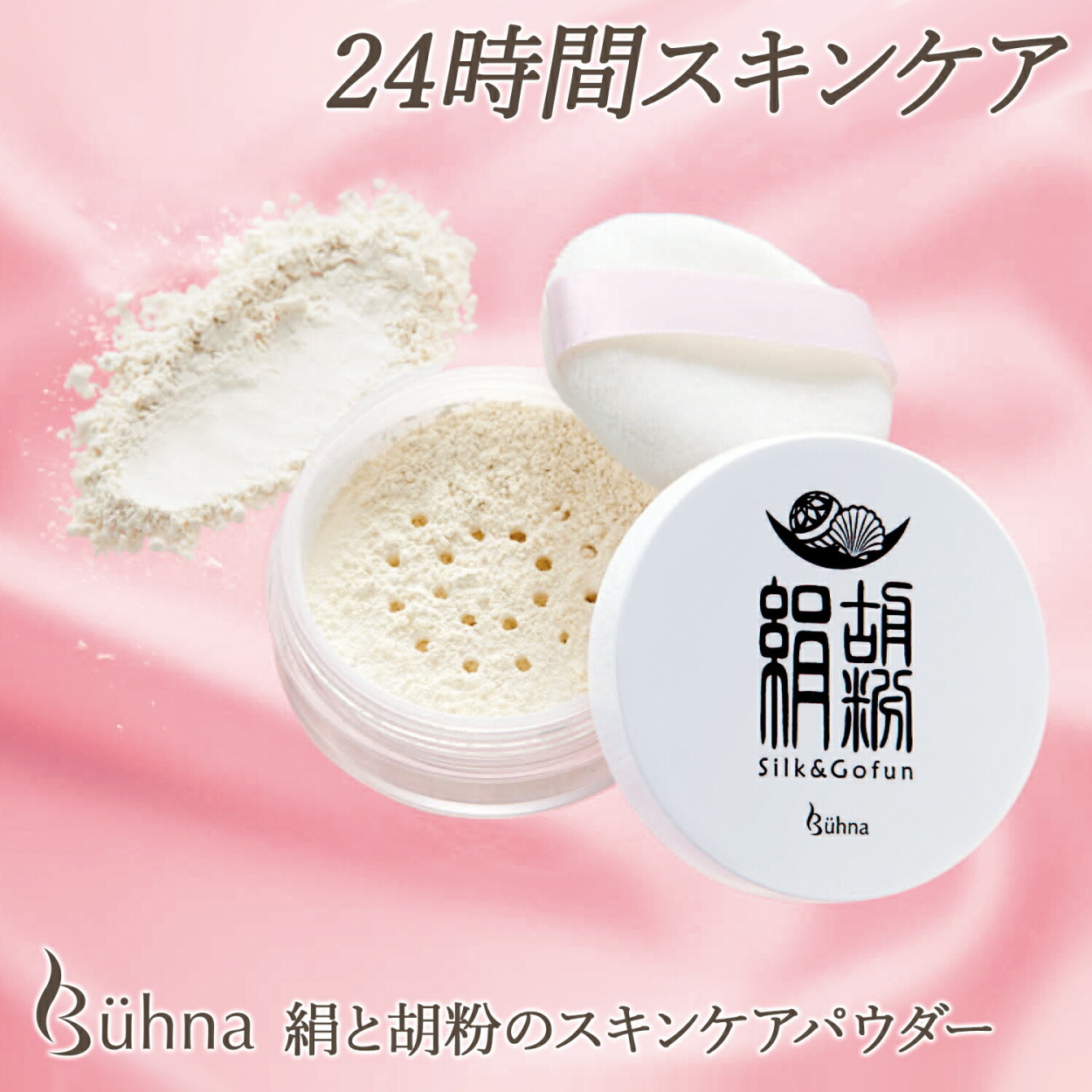 | 美肌成分シルクと胡粉のパウダーで、メイクしたようにツヤ感のある肌に仕上げながらスキンケア。旅行やお泊り、クリームのベタツキを押さえたいとき、ファンデーションを塗りたくない人にも大変便利です。絹/シルクパウダー/胡粉パウダー/ミネラルパウダー/24h/すっぴんメイク/おうちメイク/仕上げパウダー/ナイトパウダー/美容パウダー/ナチュラルメイク/薄化粧 |