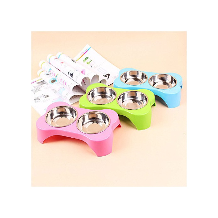 Time4Deals애완동물용 식기 개와 고양이용 먹이 만들어 넣음(담는 그릇·상자 등) 볼 스테인레스강제 플라스틱 베이스 더블 볼 부착 애완동물 식기 후드 볼 스탠드 이수 해 다