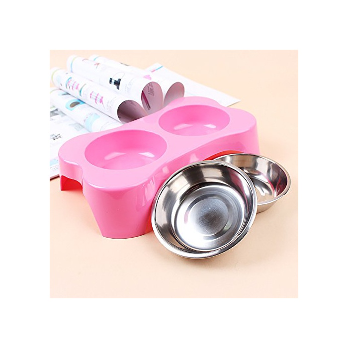 원본상품명:Time4Dealsペット用食器 犬猫用エサ入れ ボウル ステンレス鋼製 プラスチックベ?ス ダブルボウル付き ペット 食器 フ?ドボウルスタンド 餌 水やり 多頭飼い (ピンク)