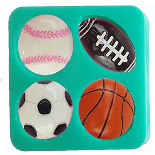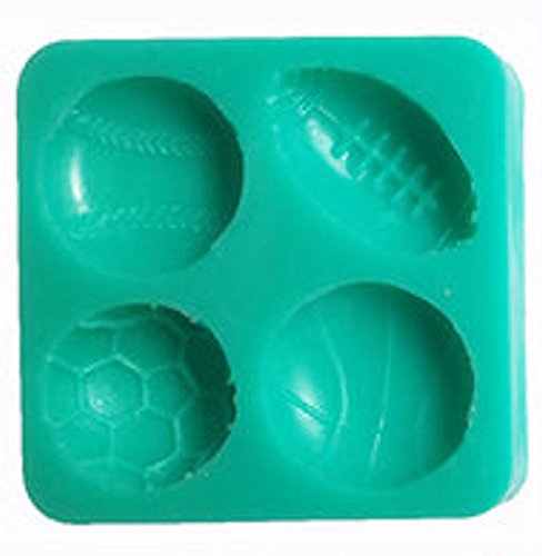 Sports Balls - Soccer, Football, Baseball & Basketball Silicone Mold for Gum Paste, Fondant, Chocolate, Crafts