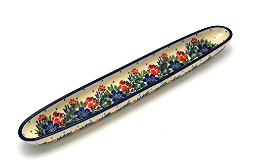 Studio : Ceramika Artystyczna Publisher : Ceramika Artystyczna Product Description 1"H x 2"W x 12 1/4"L Handmade and hand-painted in Poland These long, skinny "boats" add a special touch to your dining table and can be used for more than just olives! All of our Polish Pottery is safe for use in the microwave, dishwasher,and oven olive boats , olive trays , olive dishes , appetizers , polish pottery , ca pottery , ceramika artystyczna , polish stoneware 0