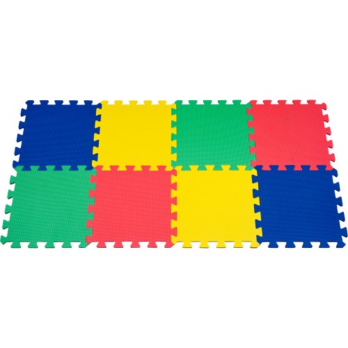 -. Feature : Features include: Anti-fatigue Shock Absorbing EVA Foam Protects Floors from Damage Lightweight and Waterproof / Interlocking TilesStores Easily When Not in Use8 Tiles / Two of Each Tile: Red, Yellow, Blue, GreenTile Dimensions: 12.625 x 12.625 x .5 inches / Rectangle Tile Configuration Dimensions: 24.5 x 48 x .5 inchesIncludes Retail Packaging