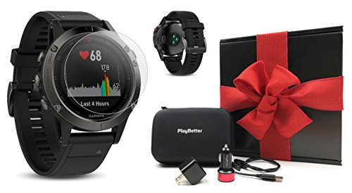 -. Title : Garmin fenix 5 (Slate Gray with Black Band) GIFT BOX Bundle | Includes Glass Screen Protector, PlayBetter USB Car/Wall Adapter & Hard Carrying Case | Multi-Sport GPS Watch with Wrist-Heart Rate