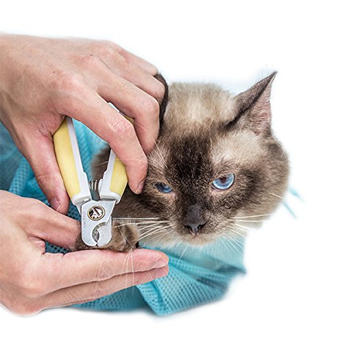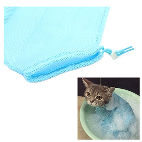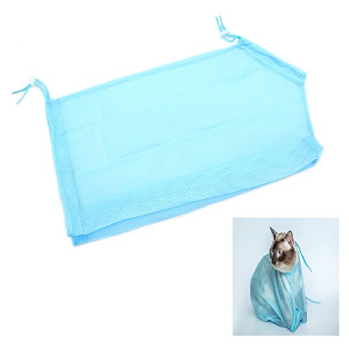 -. Title : HUELE Cat Grooming Restraint Bag Adjustable Multifunctional Polyester Cat Washing Shower Mesh Bags Pet Nail Trimming Bags ,Blue