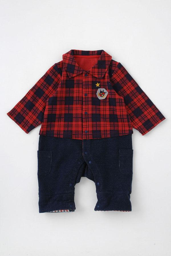 | このカバーオール1着で、シャツとパンツを着せてるみたいに見えるお出かけにぴったりなウェア。ちょっぴりショート丈だから、ブーツや靴下で可愛くコーデが楽しめます。 |