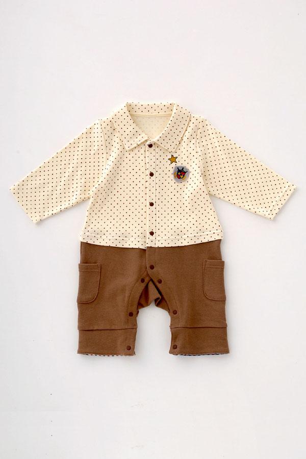 | ボンシュシュ。英国風スタイル長袖前開きカバーオール。 |