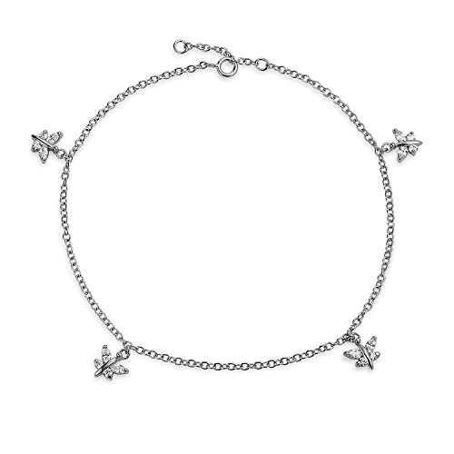This beautiful silver charm ankle bracelet is a must have accessory. The classic and feminine butterfly design on this silver anklet is perfectly executed. This chic butterfly jewelry piece is made of .925 sterling silver, and are adorned with clear colored cubic zirconia stones on every butterfly. This CZ butterfly charm bracelet will make everyone flutter around you with envy. This fabulous and fashionable silver butterfly anklet translates great from daytime to evening wear. The rolo chain on this butterfly charm anklet adds that extra bit of durability you have been searching for. Give this as a precious gift to those who are butterfly or nature lovers, or to anyone on your holiday gift list.Feature