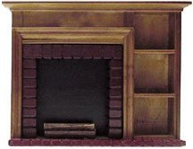 Dollhouse Miniature Furniture Walnut Red Brick Fireplace with Shelves
