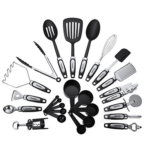 MONEY-BACK GUARANTEE - Yitchen offers you the highest quality stainless steel cooking utensil set featuring supreme nylon gripped handles. We are so confident that you’ll fall in love with our cooking tools set that we offer you a "Love it or return it guarantee". There’s no risk. Click “Add to Cart” now and feel the difference of quality.