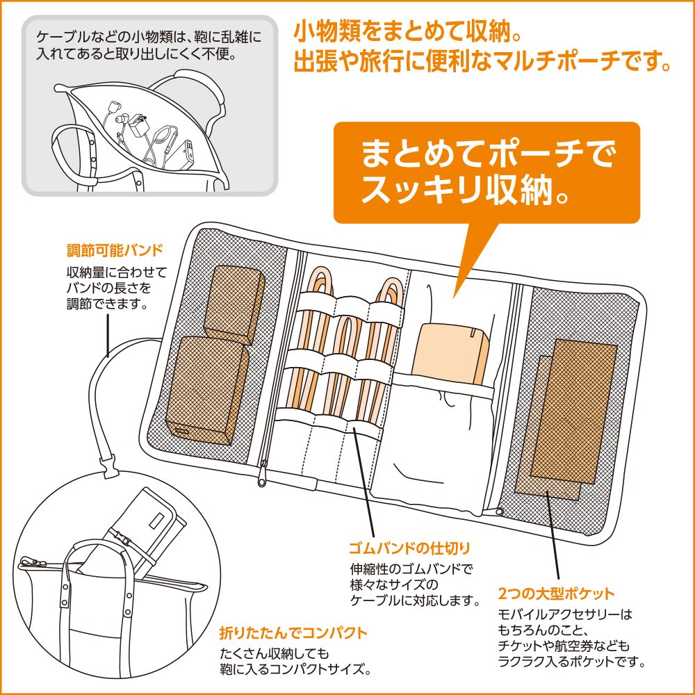 It is a pouch that can store a smart phone cable and a battery that can be scattered in something in the bag.
