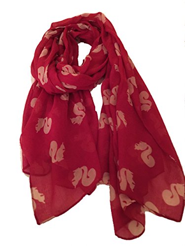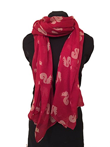 Product DescriptionRed with white squirrel design scarf/wrap. Lovely long scarf / wrap, Fantastic Gift Size 95 X 185 cm 100% viscose0