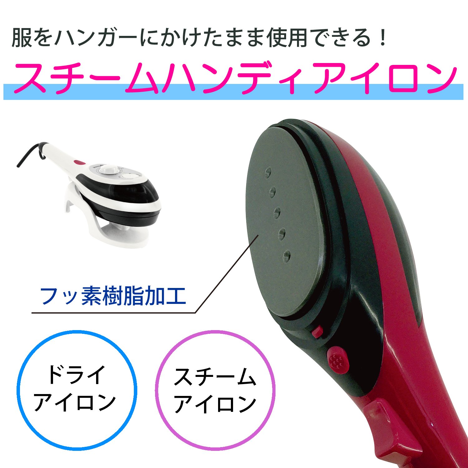 A steam handy iron that can be used while hanging clothes