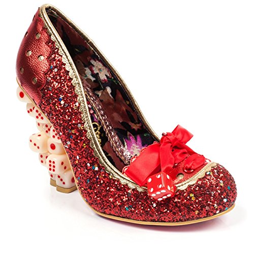 -. Title : Irregular Choice Ante', glitter dice heel pump, red